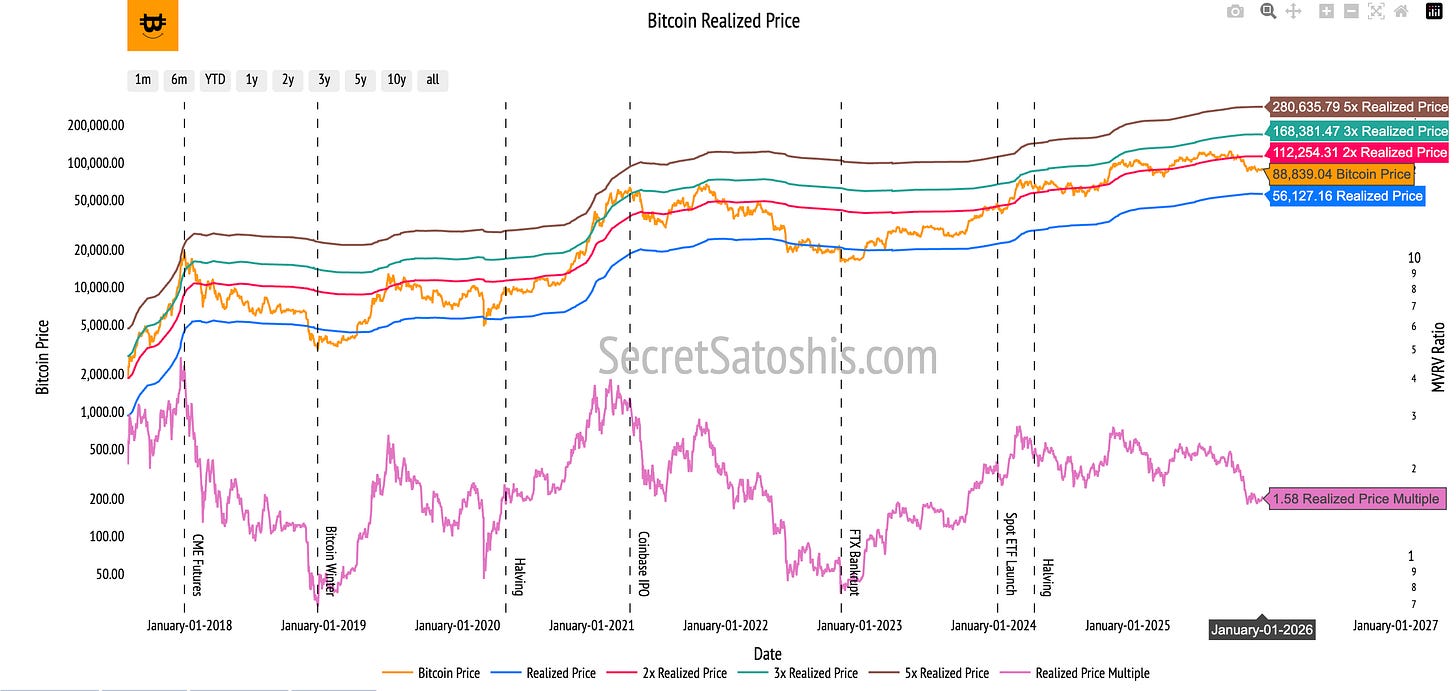 This makes realized price a useful way to think about risk and froth, not precise valuation.