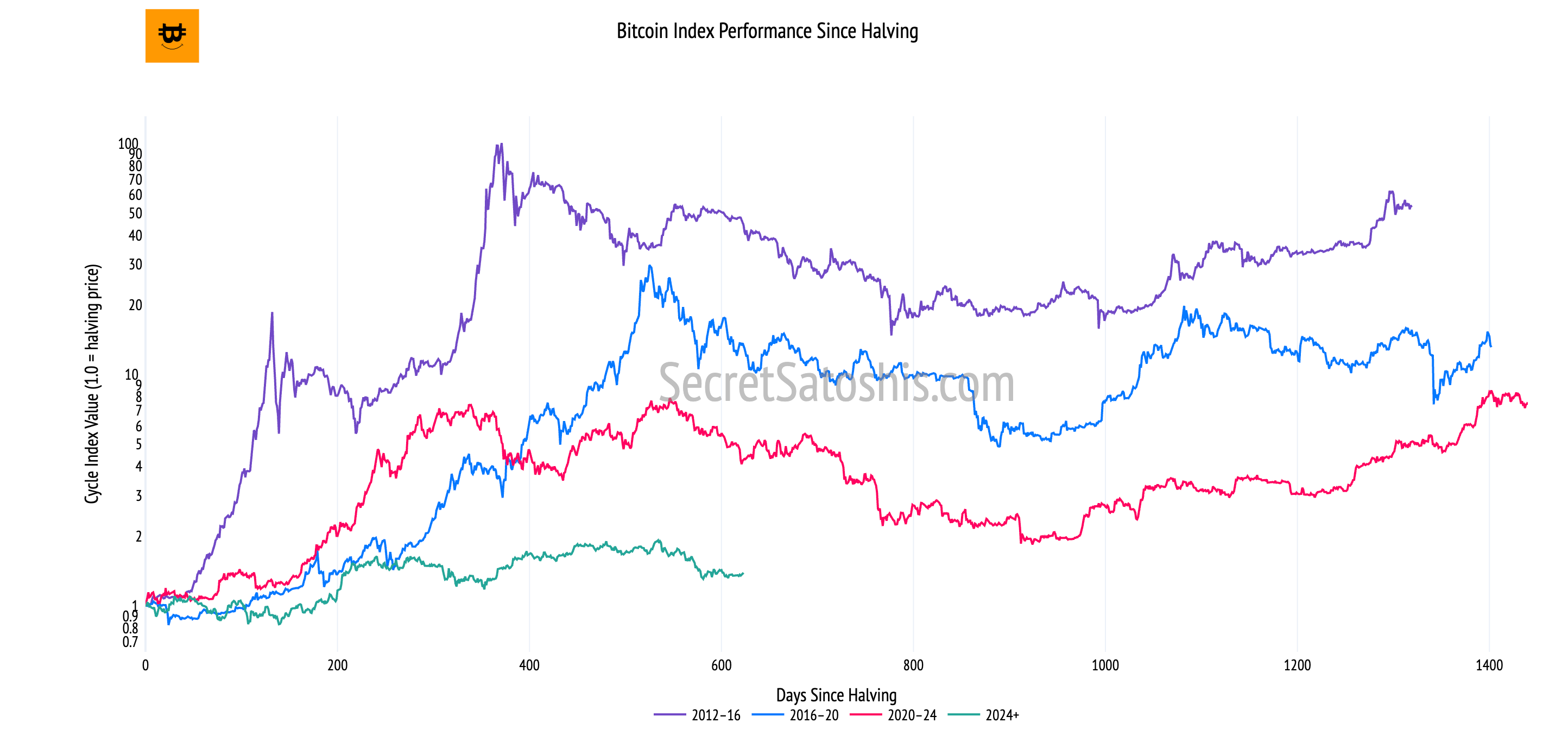 Since the halving, price appreciation has been moderate and orderly, rather than parabolic, contrasting with historical post-halving blow-off phases.