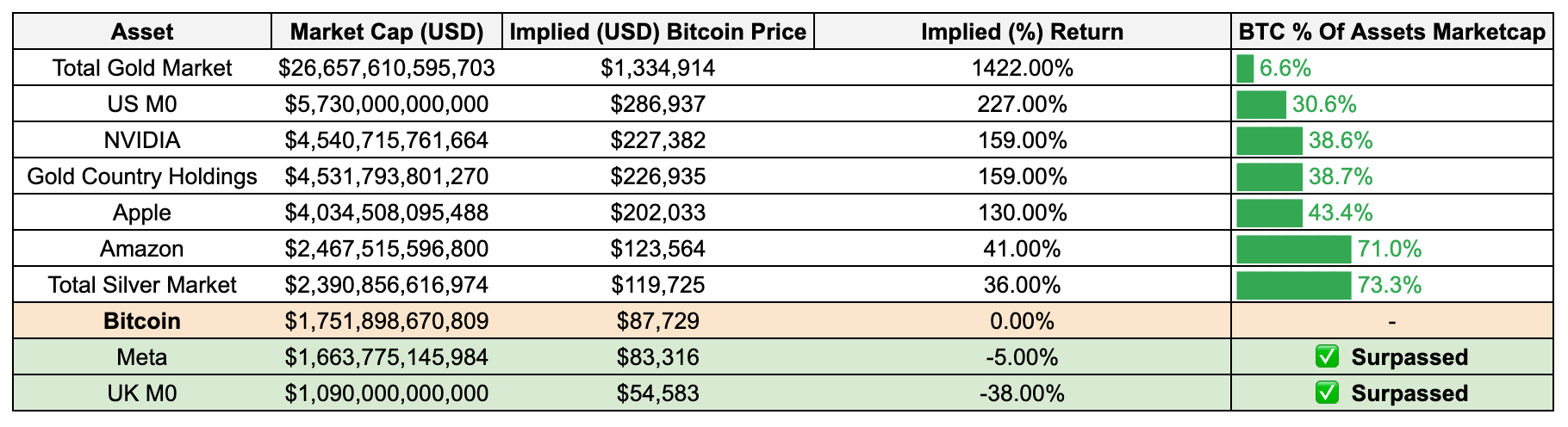 Relative valuation provides context for volatility. None of these scenarios imply Bitcoin becoming small again. They represent shifts within the top tier of global assets, not departures from it.