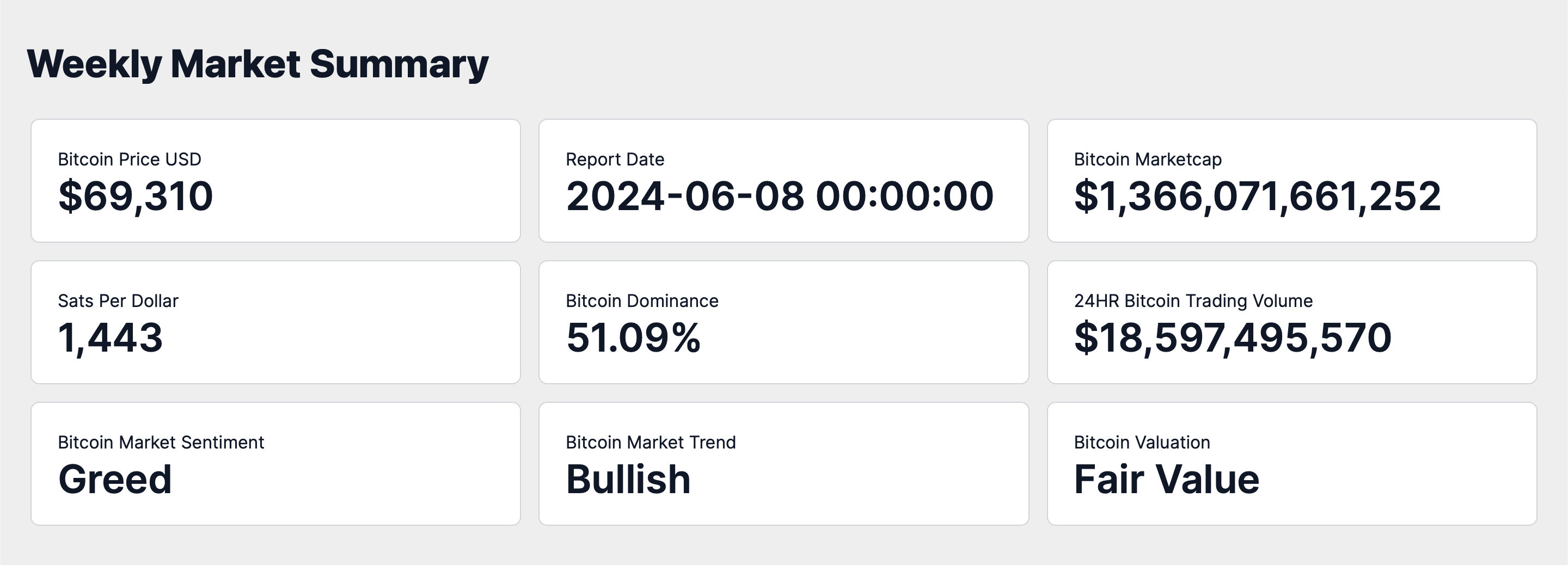 Welcome to another edition of the Weekly Bitcoin Recap. As your trusted Bitcoin Analyst, I'm here to guide you through the intricacies of the Bitcoin industry, backed by the latest blockchain and market data. Let's explore the pivotal developments in Bitcoin as of June 9th, 2024.